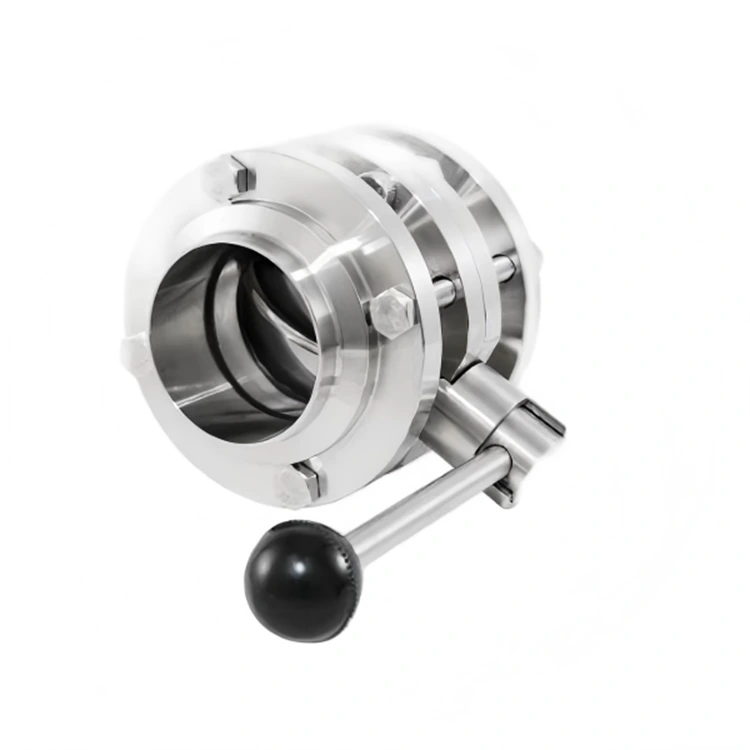 Sanitárny 3-dielny motýľový ventil využíva vysoko presnú technológiu CNC obrábania s použitím prvotriednej nehrdzavejúcej ocele SUS304 (1.4301) alebo SUS316L (1.4404) s toleranciami obrábania v rozmedzí ±0,01 mm. Vnútorný aj vonkajší povrch sú zrkadlovo leštené, s drsnosťou vnútornej steny Ra≤ 0,4 μm (presnosť možno podľa potreby zvýšiť), čím sa eliminujú sanitárne mŕtve rohy. Spĺňa normy GMP a EHEDG a podporuje online čistenie CIP a sterilizáciu parou pri vysokej teplote SIP.
